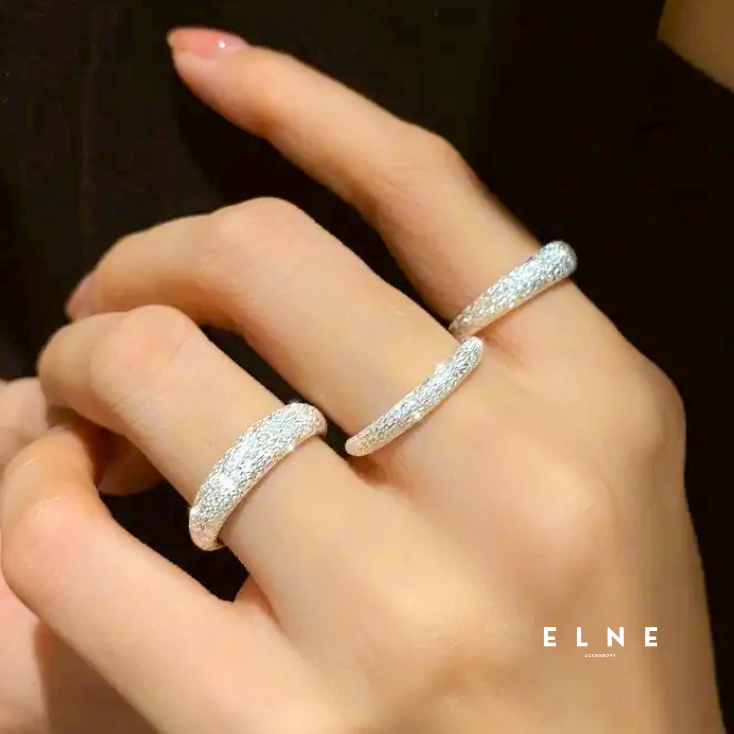 細かなカット加工が光を反射し、ストーンを使わずとも指先に華やかなきらめきを生み出します。