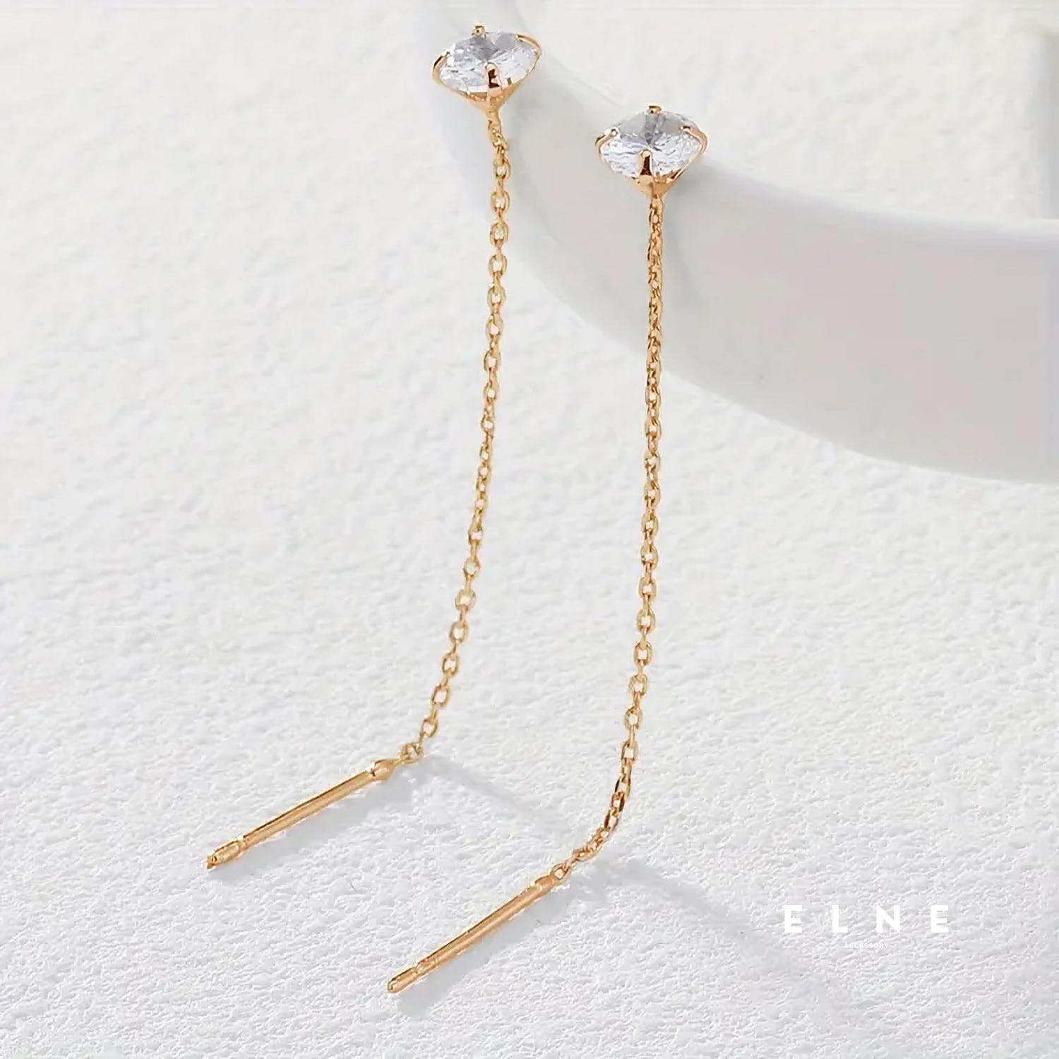 上品な輝きのエレガントドロップチェーンピアス。