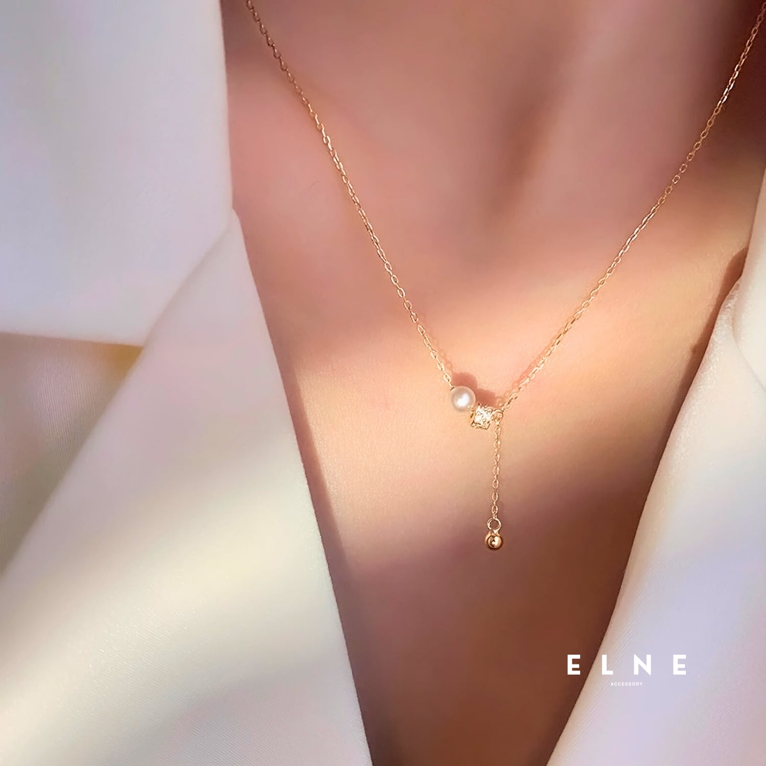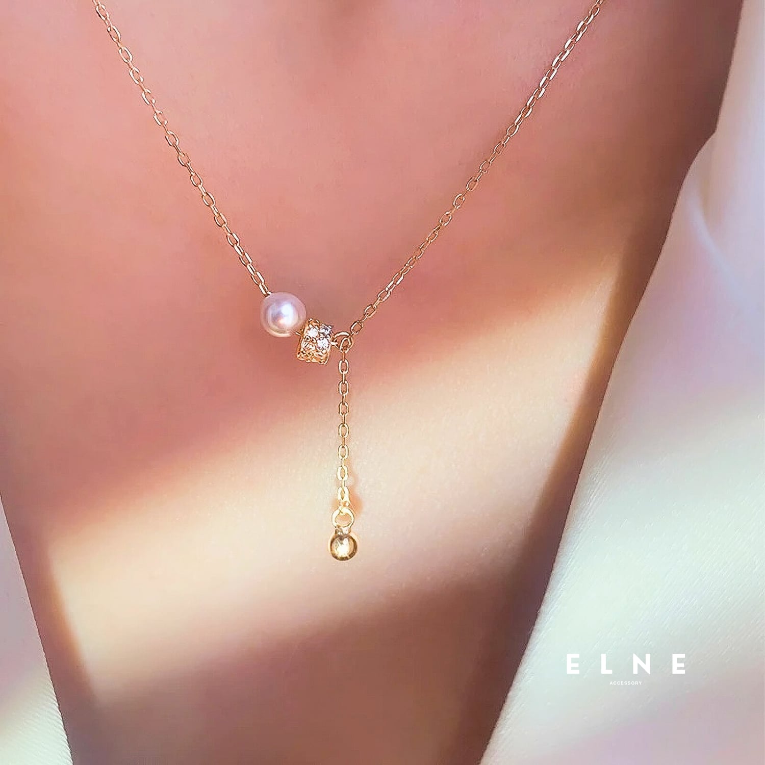 上品なパールと繊細なチェーンが美しく調和する