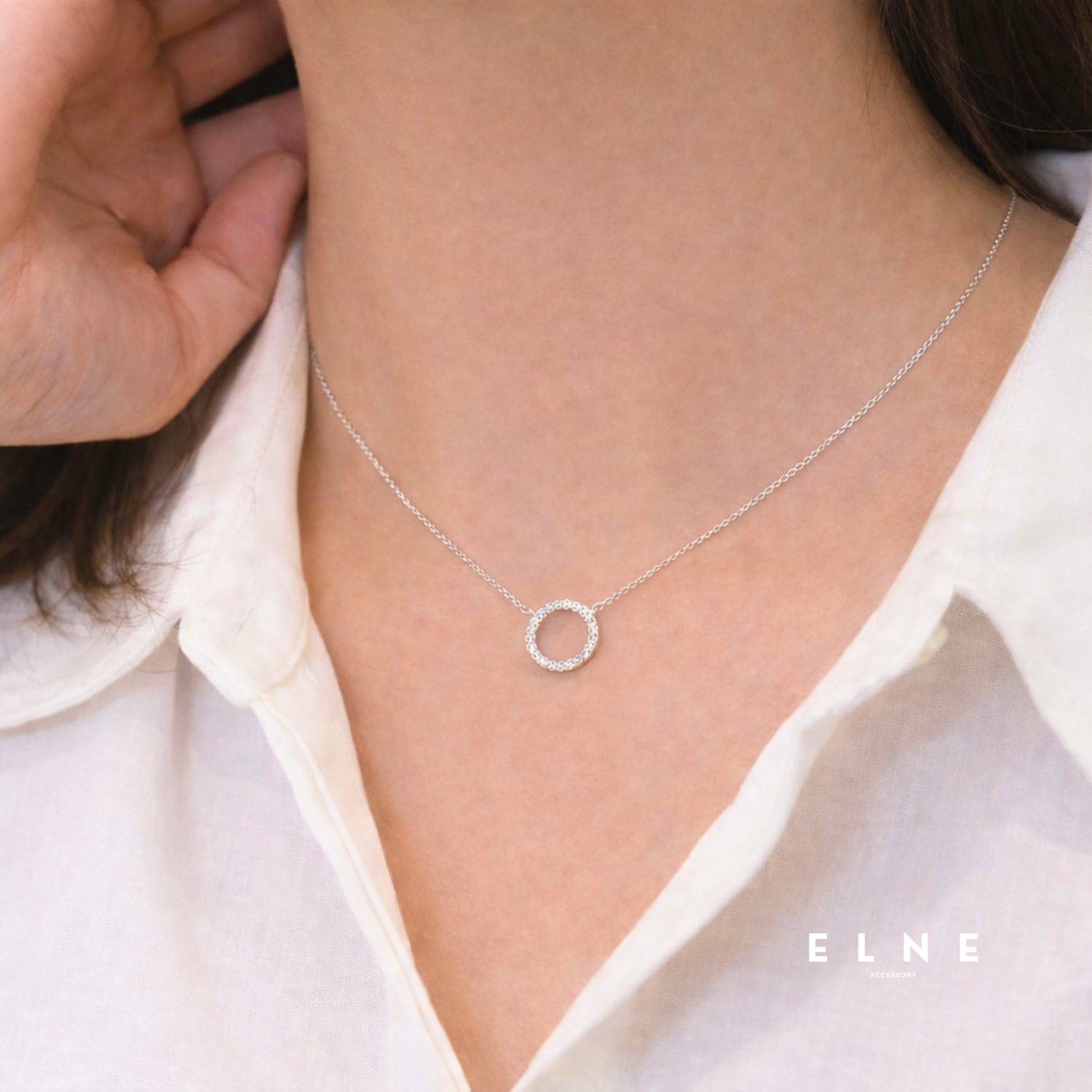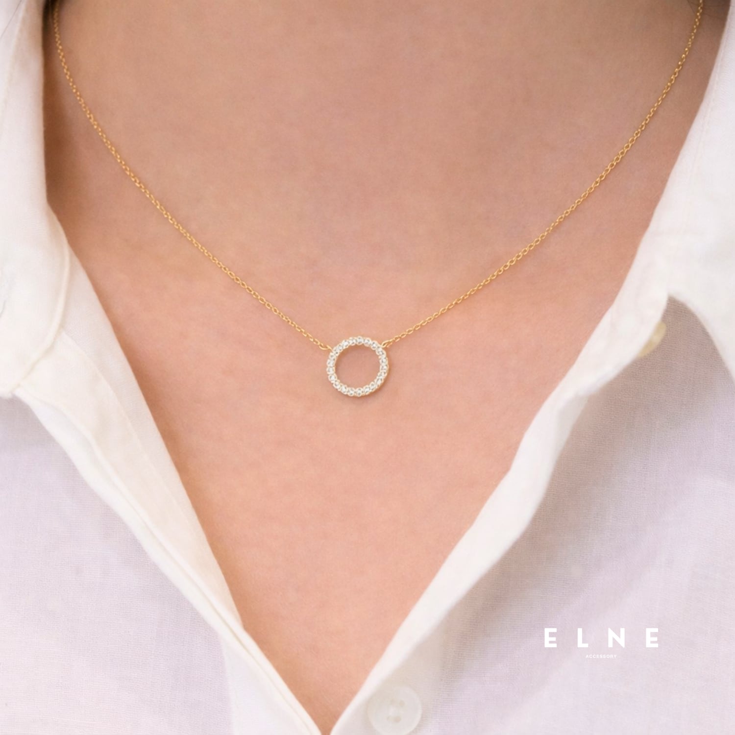 シンプルな中に、さりげない輝きを添えるサークルモチーフネックレス。