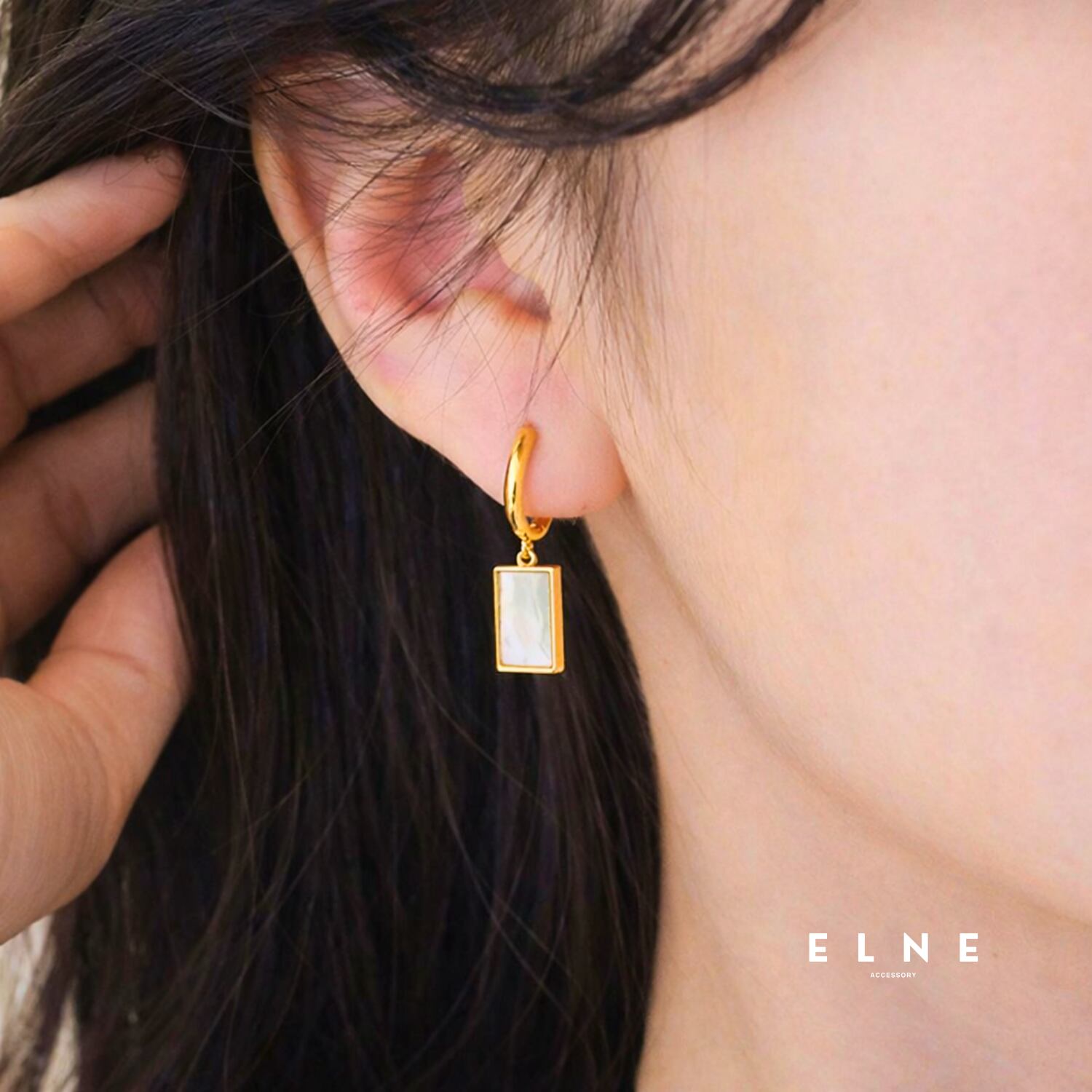 レクタングルシェルフープピアス