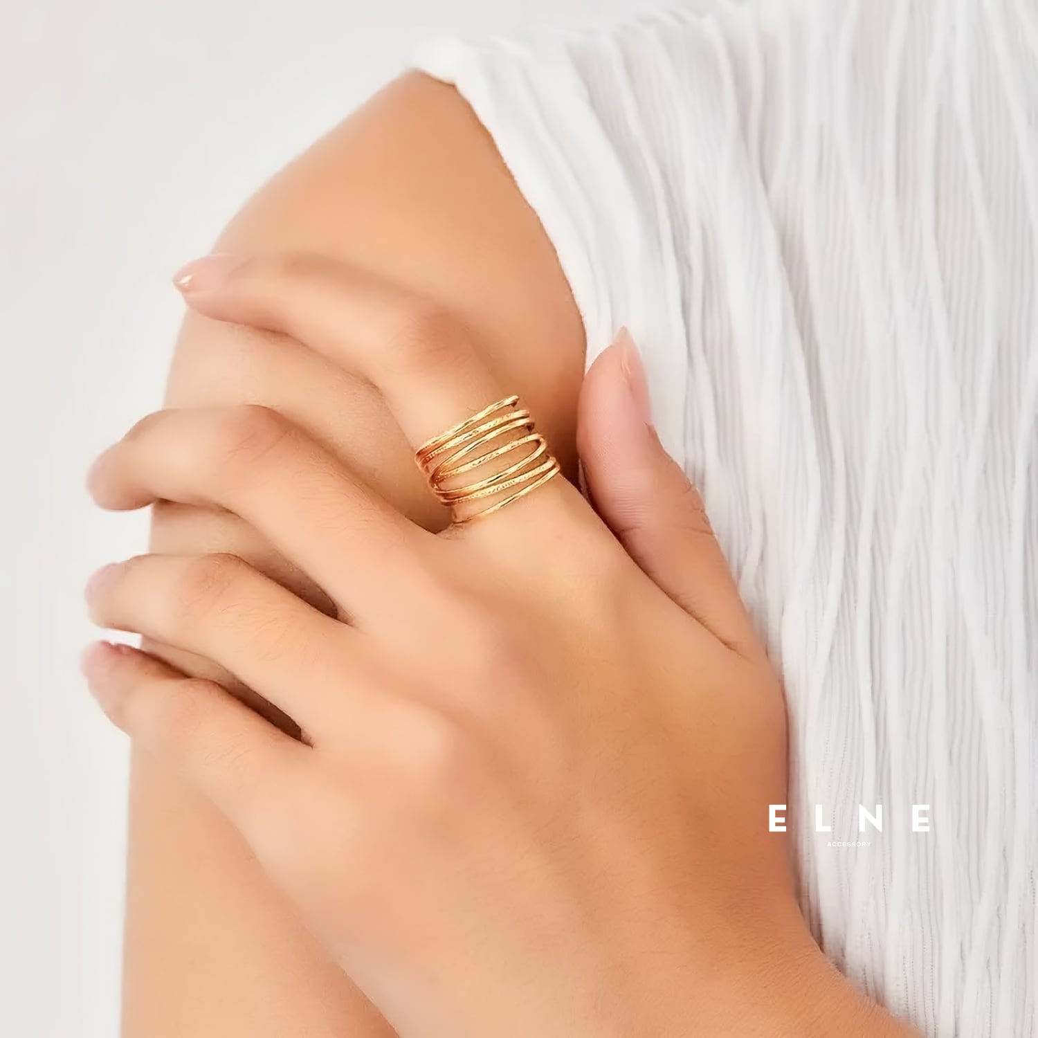 まるでレイヤードリングを重ねたような立体感を演出。