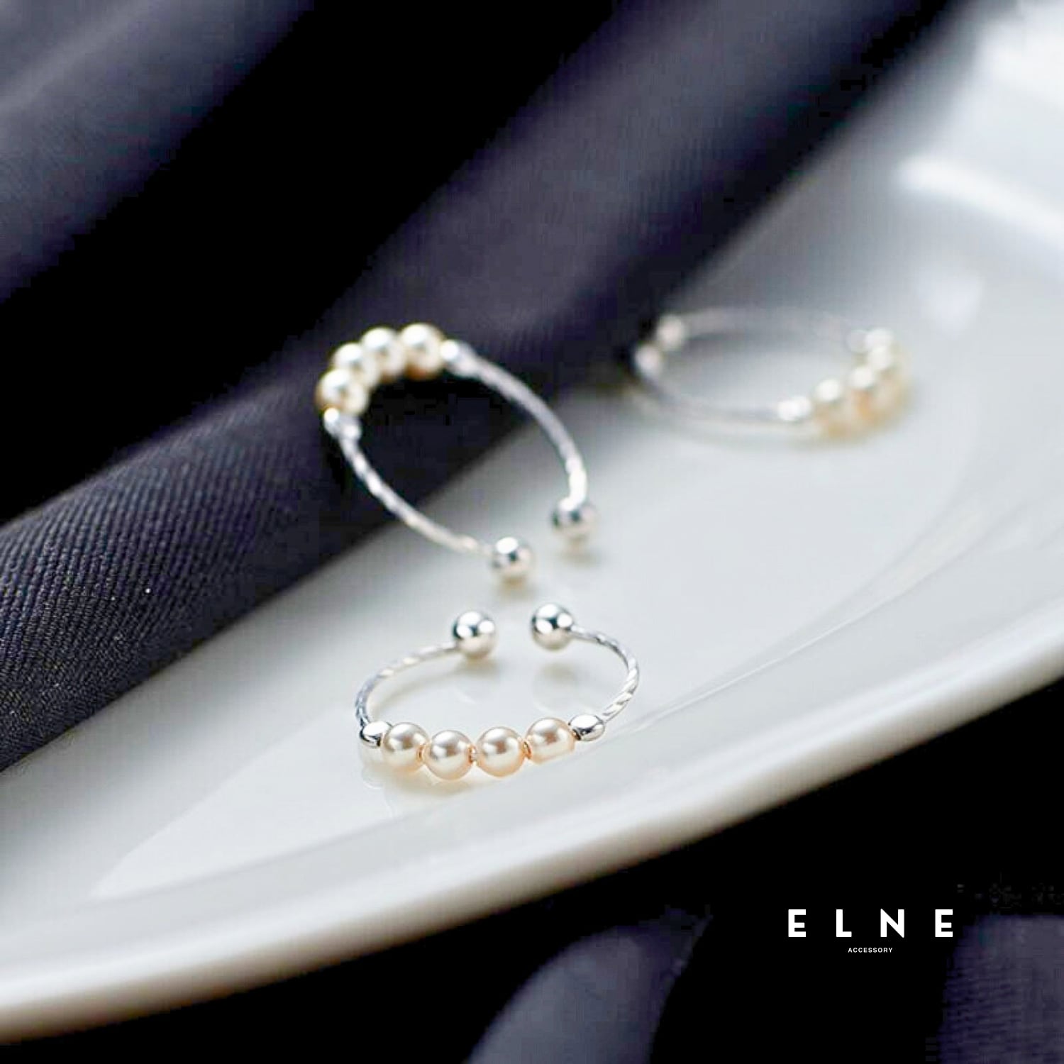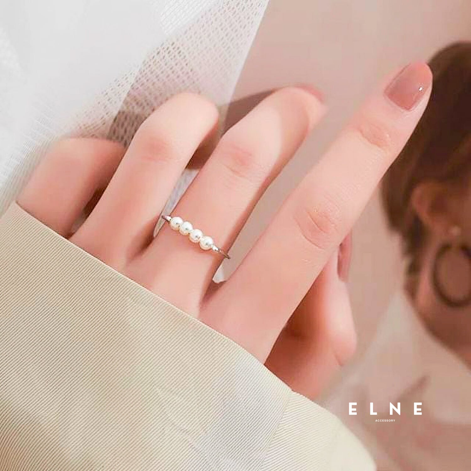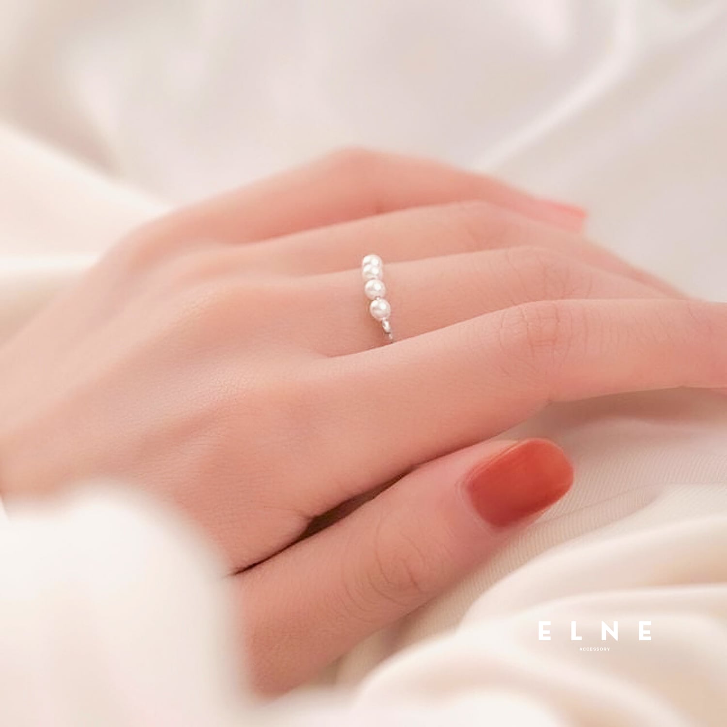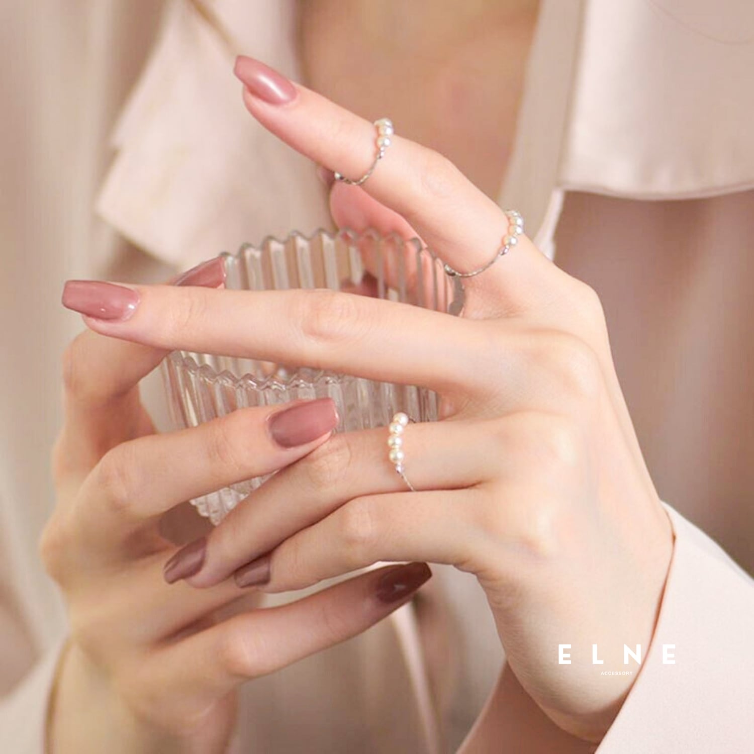小粒パールが指先に上品な輝きを添える、シンプルで女性らしいリング。