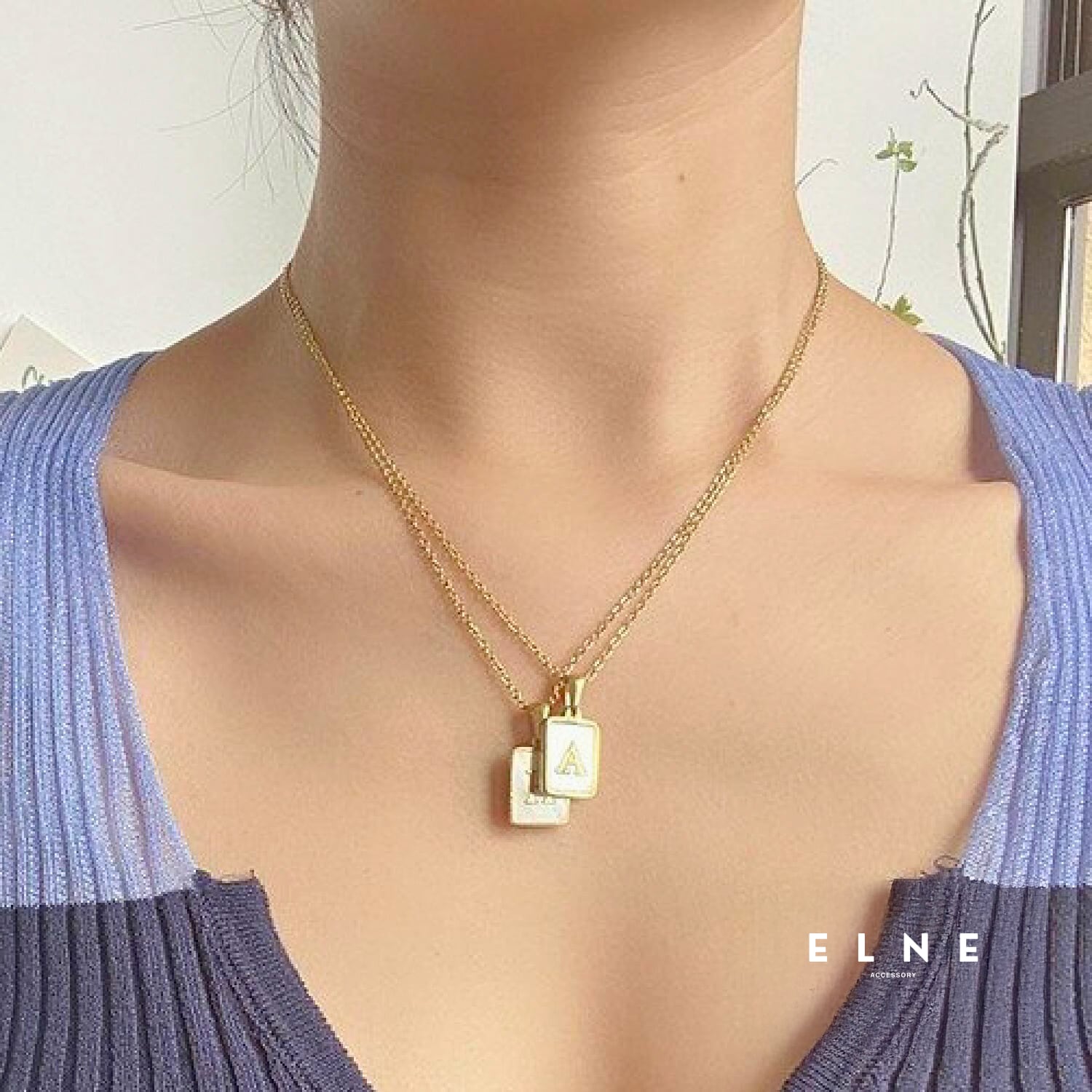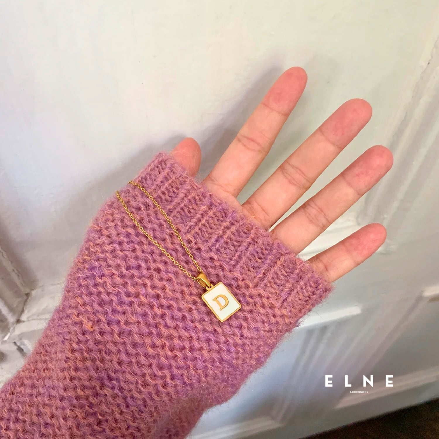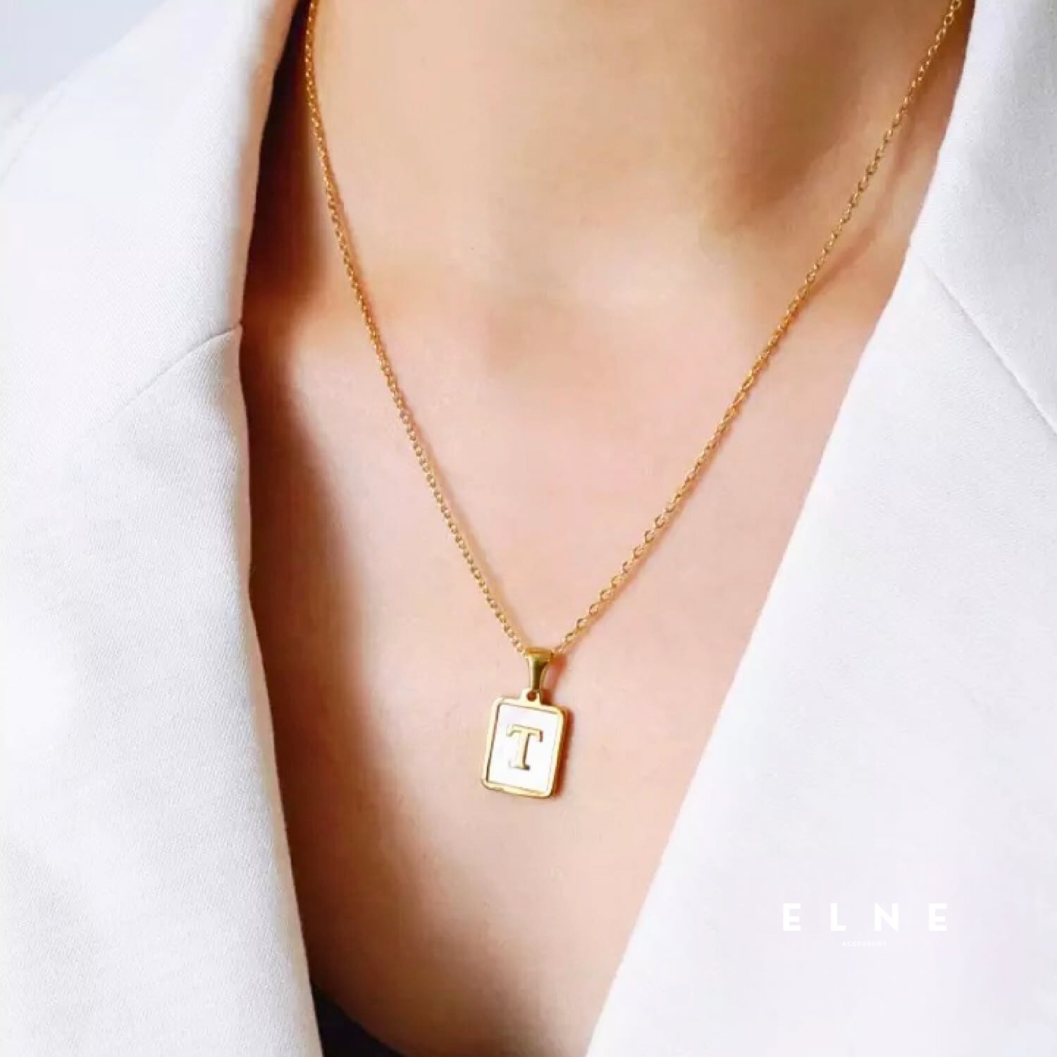 胸元にさりげない個性を添える、イニシャルデザインのネックレス。