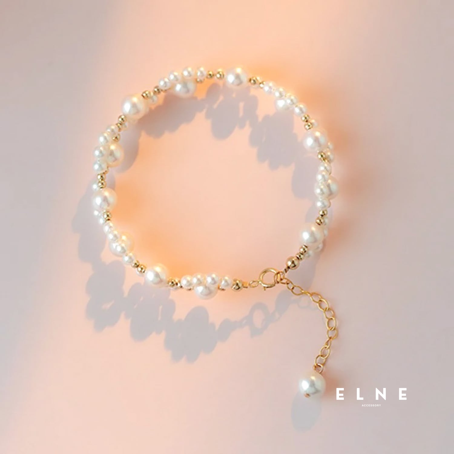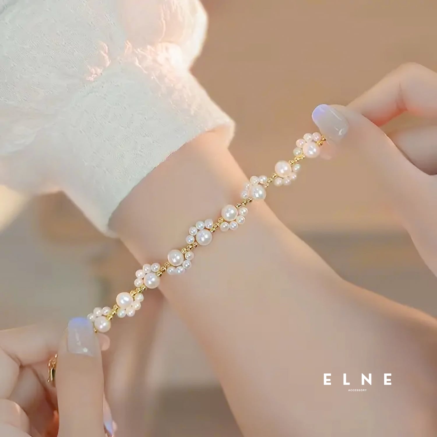 繊細なパールが連なる、上品で華やかなブレスレット。