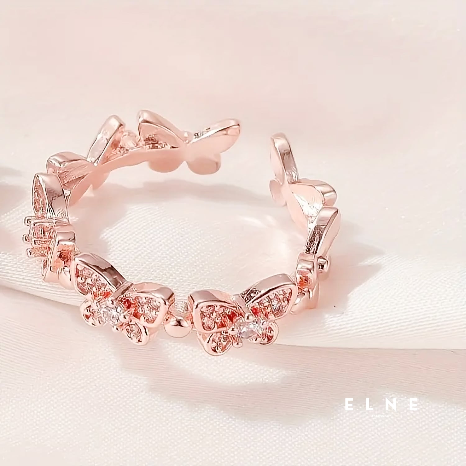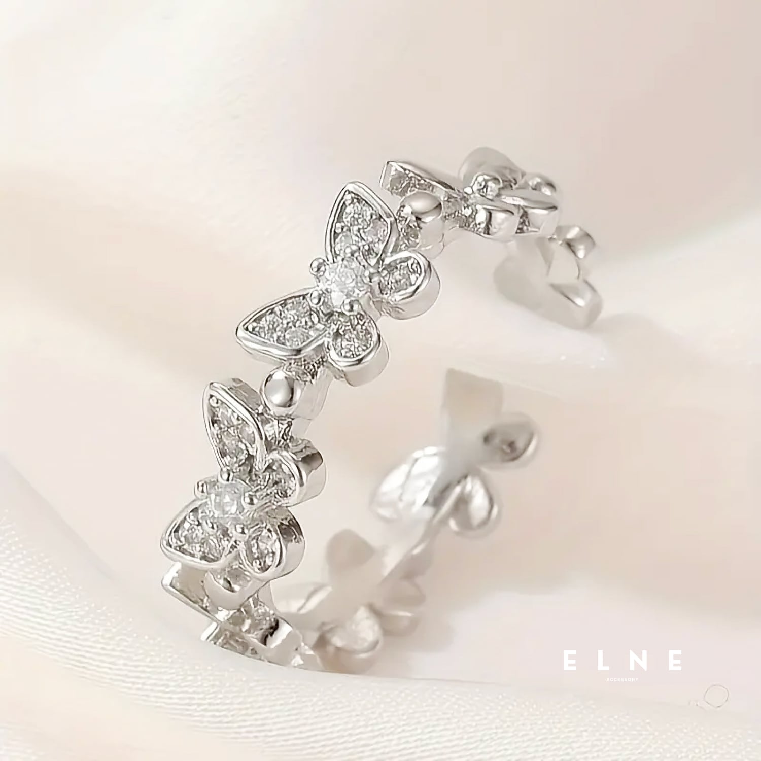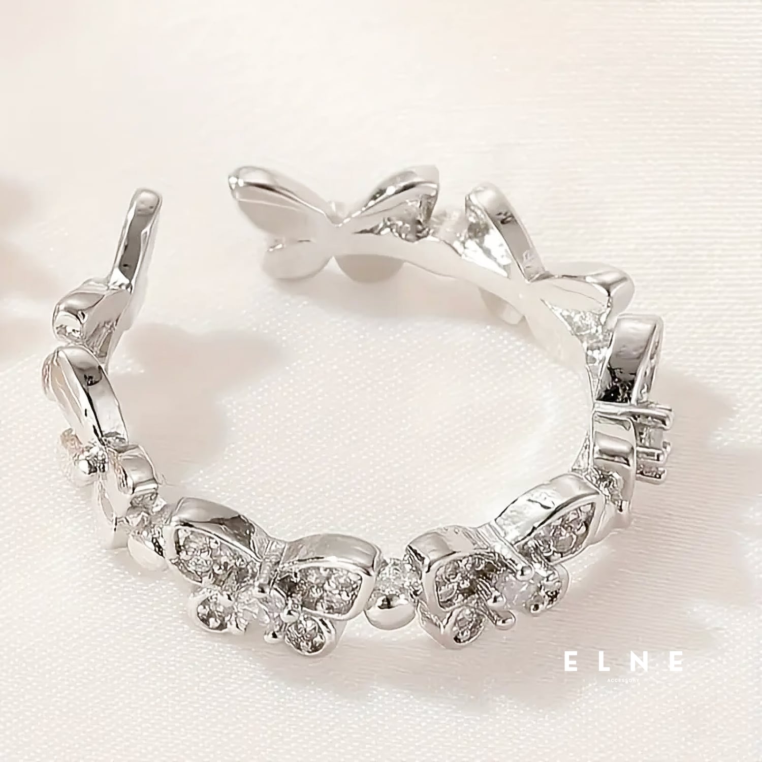 小さなバタフライモチーフが美しく輝くクリスタルバタフライリング。