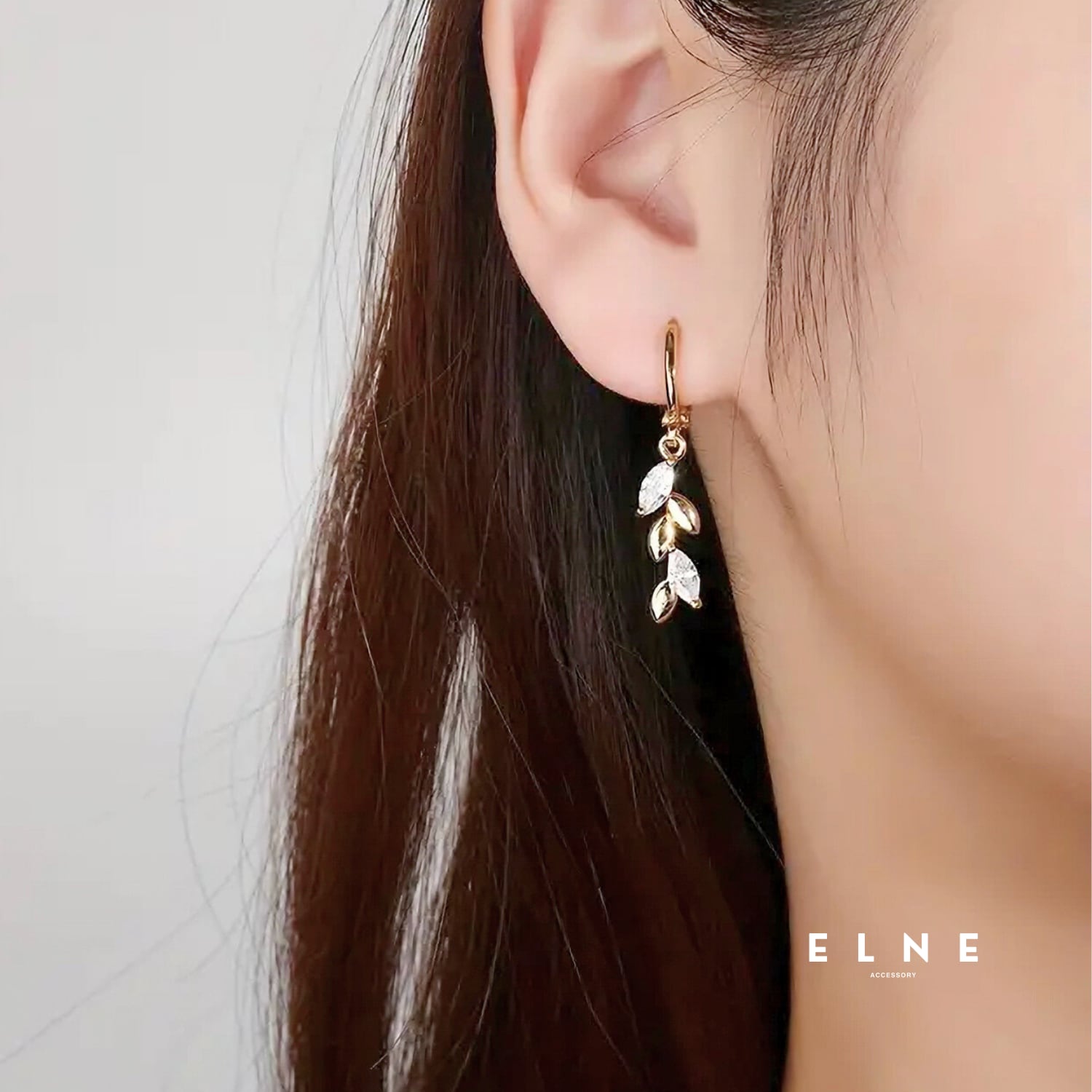 リーフドロップフープピアス。