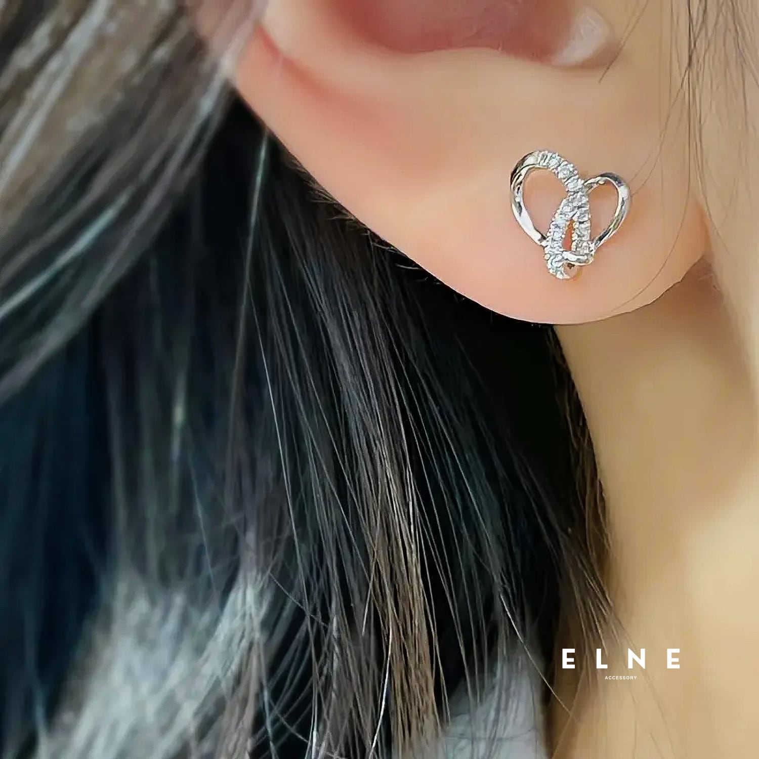 エレガントハートジルコニアピアス。