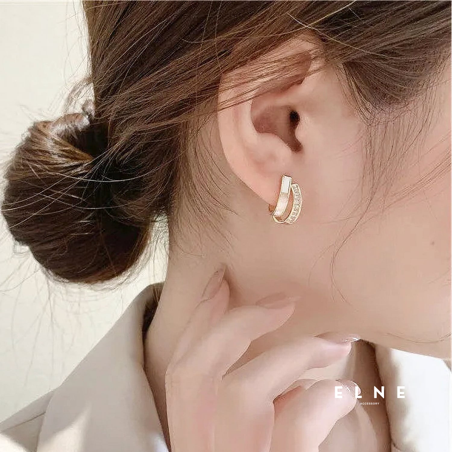 さりげない輝きが、耳元を上品に引き立てる。