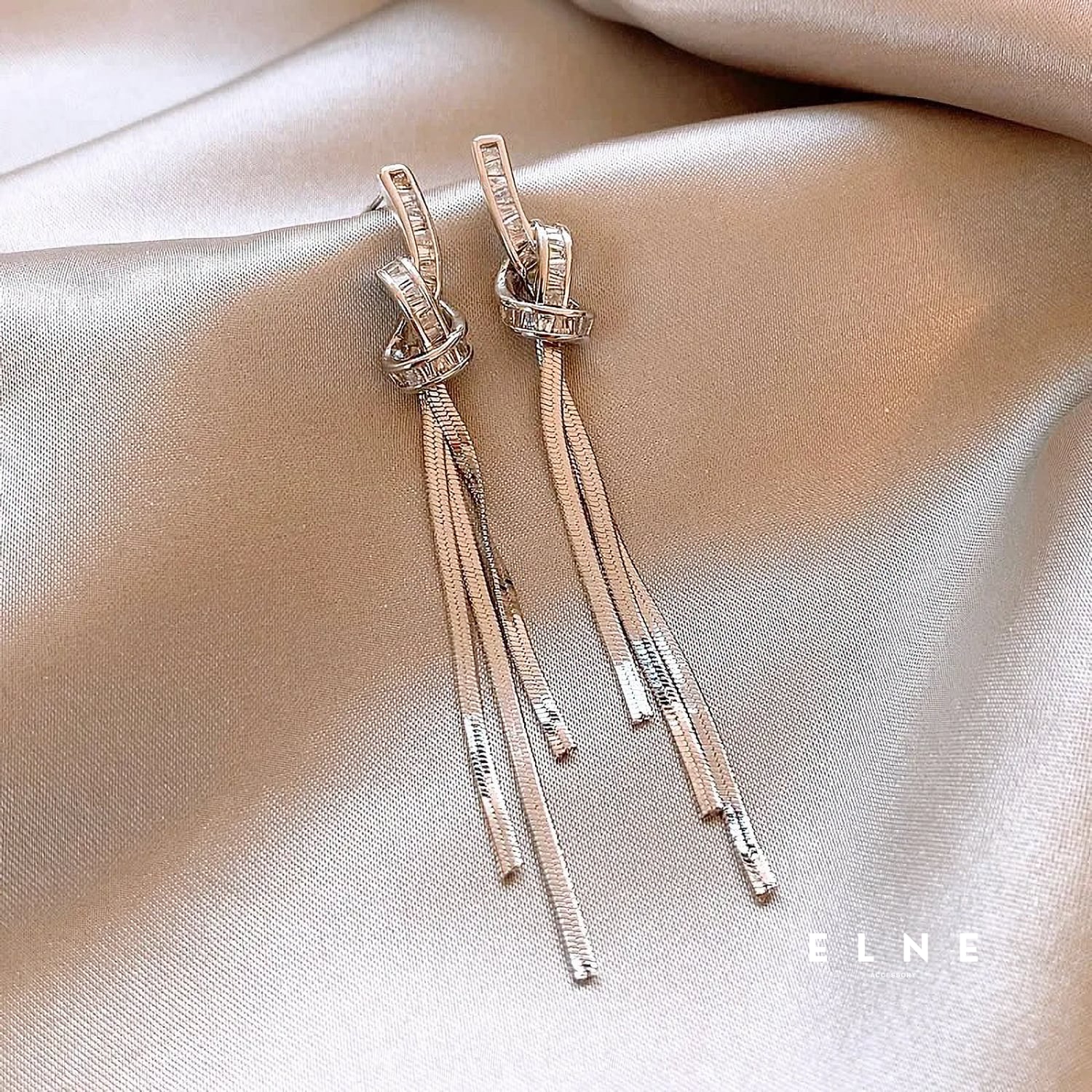 耳元に上品なアクセントを添えるロングピアス。