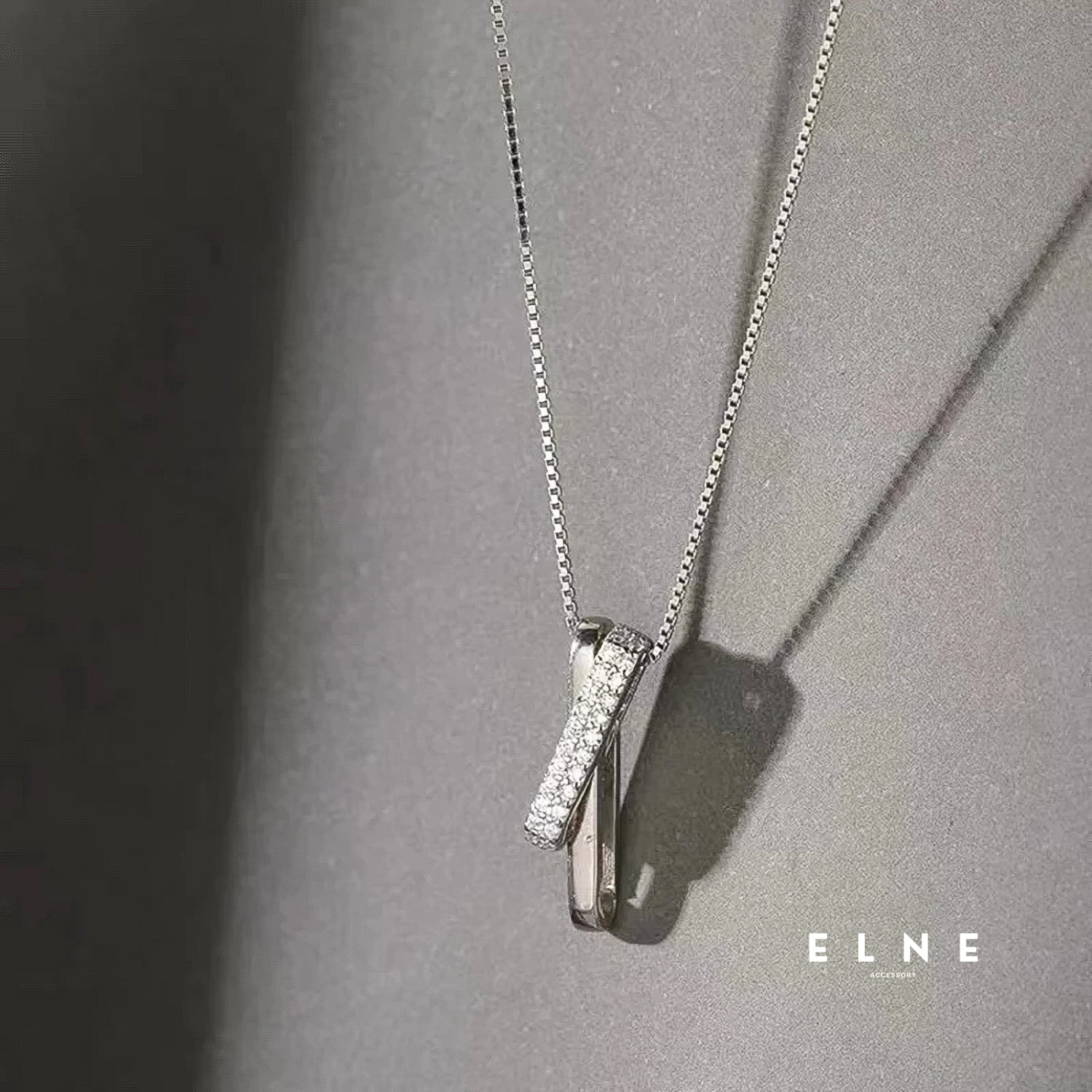 洗練されたクロスラインジルコニアネックレス。