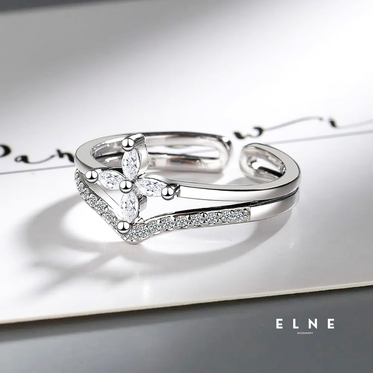 華奢なラインに沿って輝くストーンと、