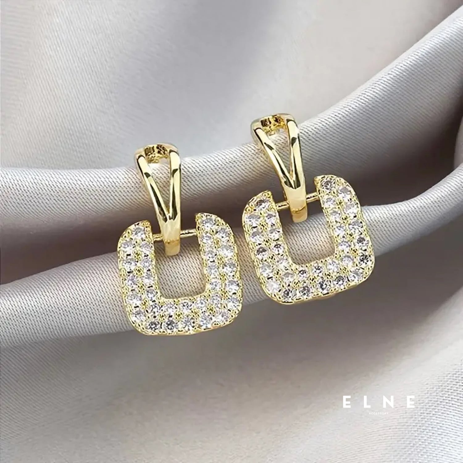 スクエアモチーフが上品に輝くデザイン。