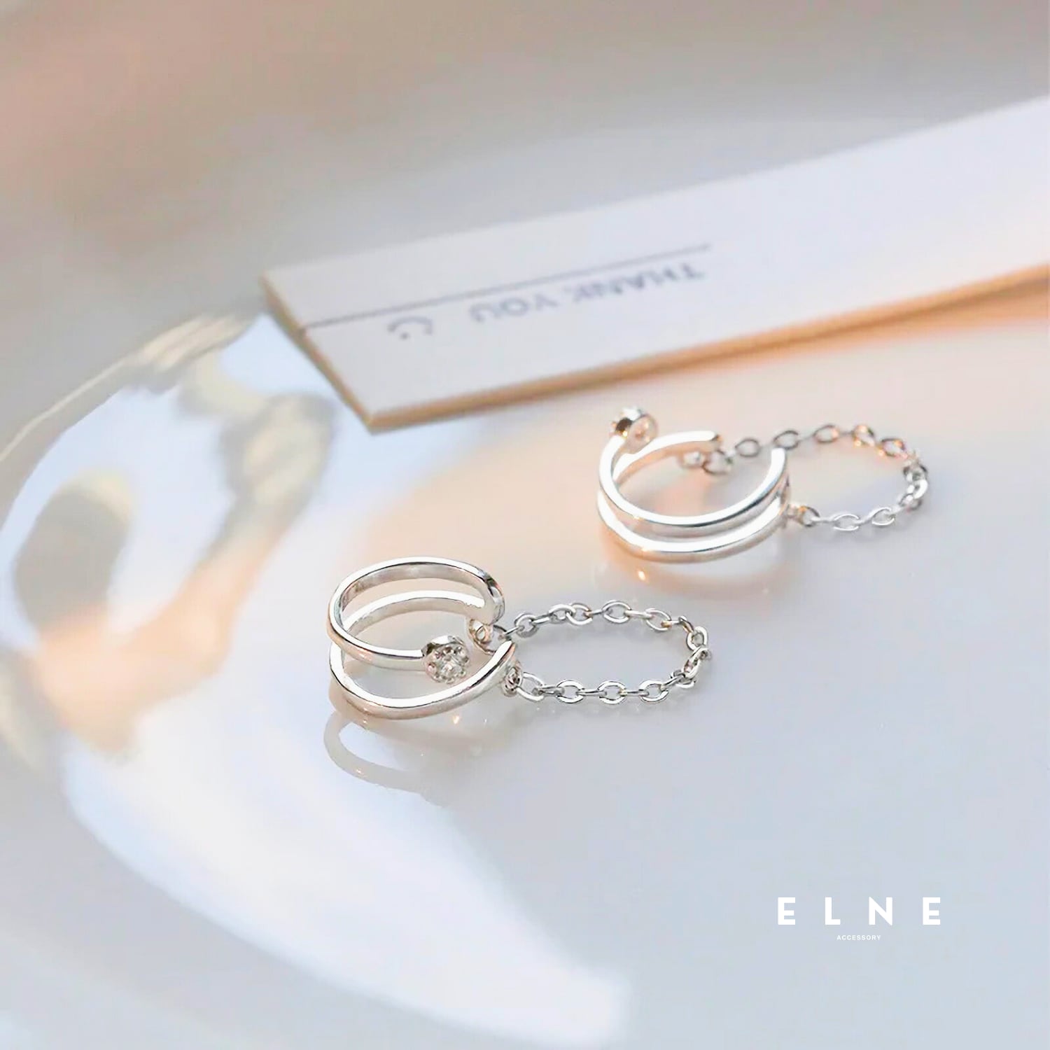 華奢なチェーンをプラスしたイヤーカフ。