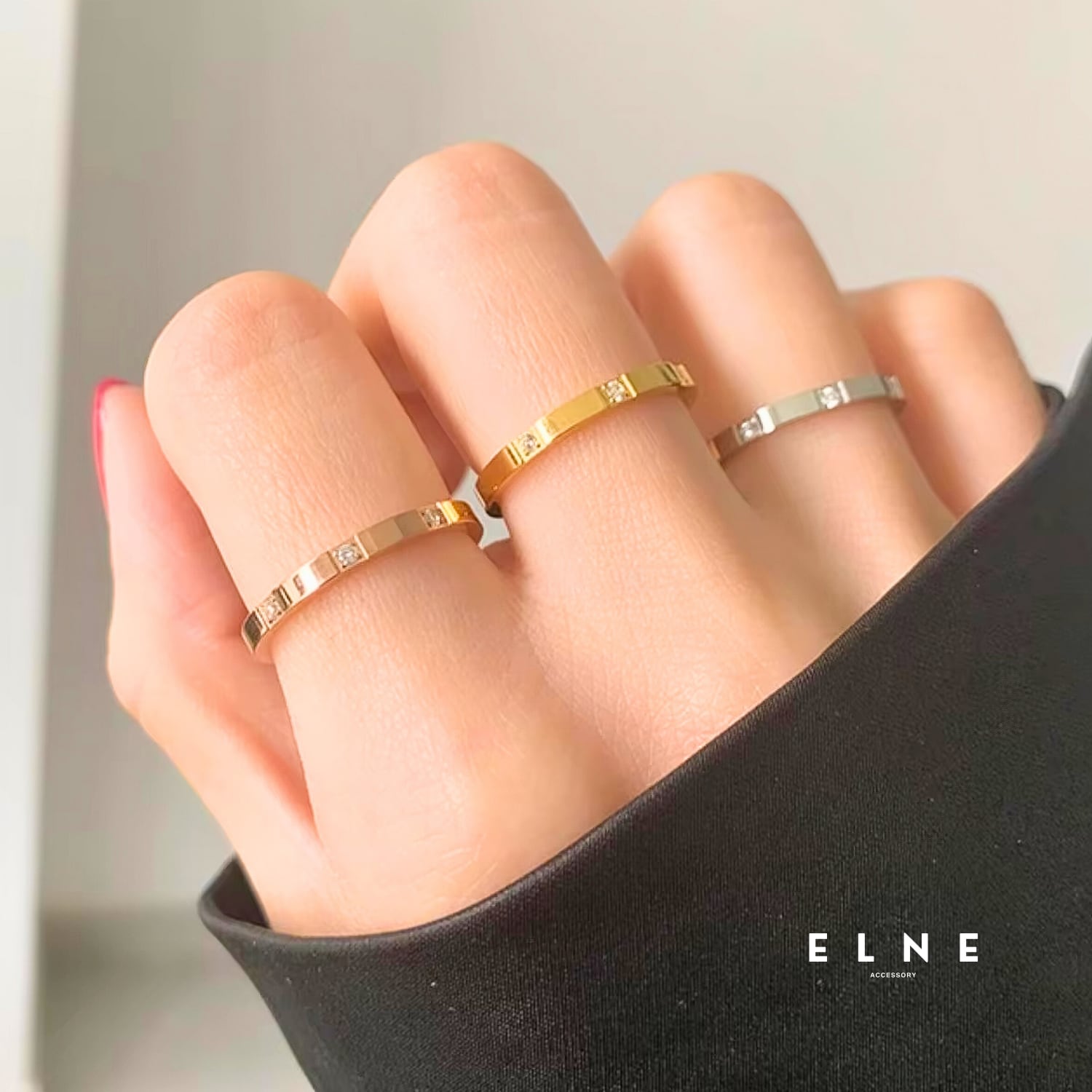 他のリングとの重ね付けにも相性抜群。