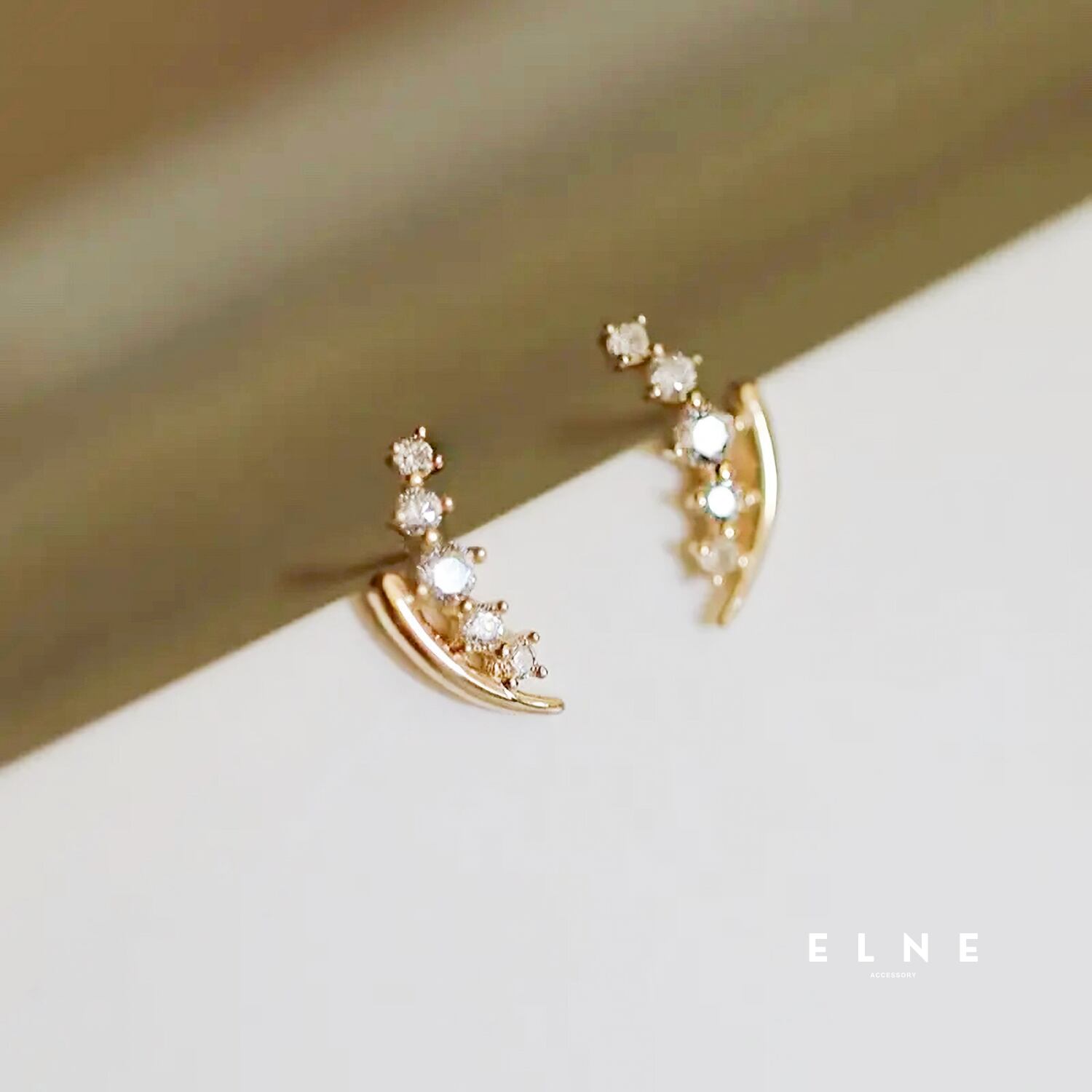 「スパークルラインピアス」は、優美なアーチ型のデザインと輝くジルコニアが美しいピアスです。繊細なラインに施されたジルコニアが美しい輝きを放ちます。上品さとモダンさを兼ね備え、カジュアルからフォーマルまで幅広いシーンで活躍します。